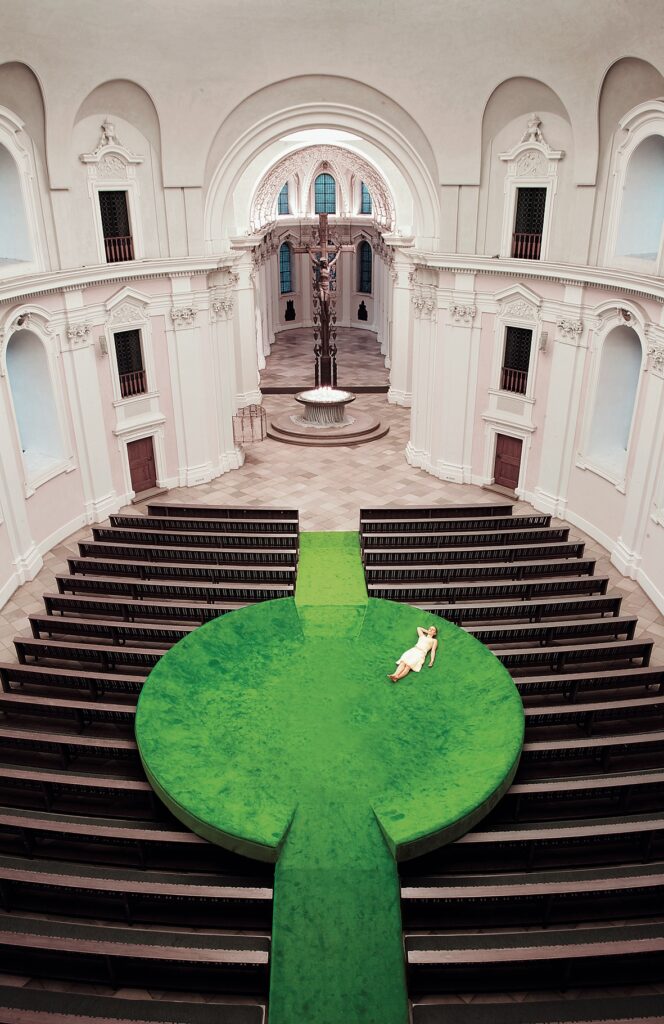 date 2004Location St. Egidien Church, NurembergMaterial iron, wood, green carpetSize diameter 8 m