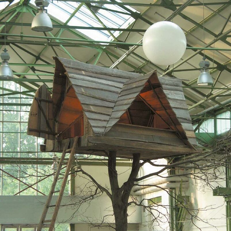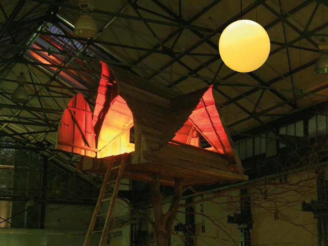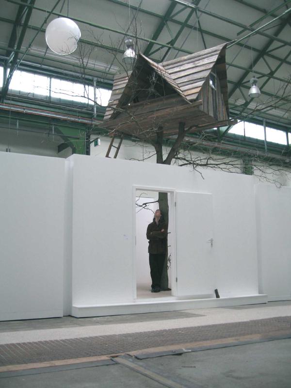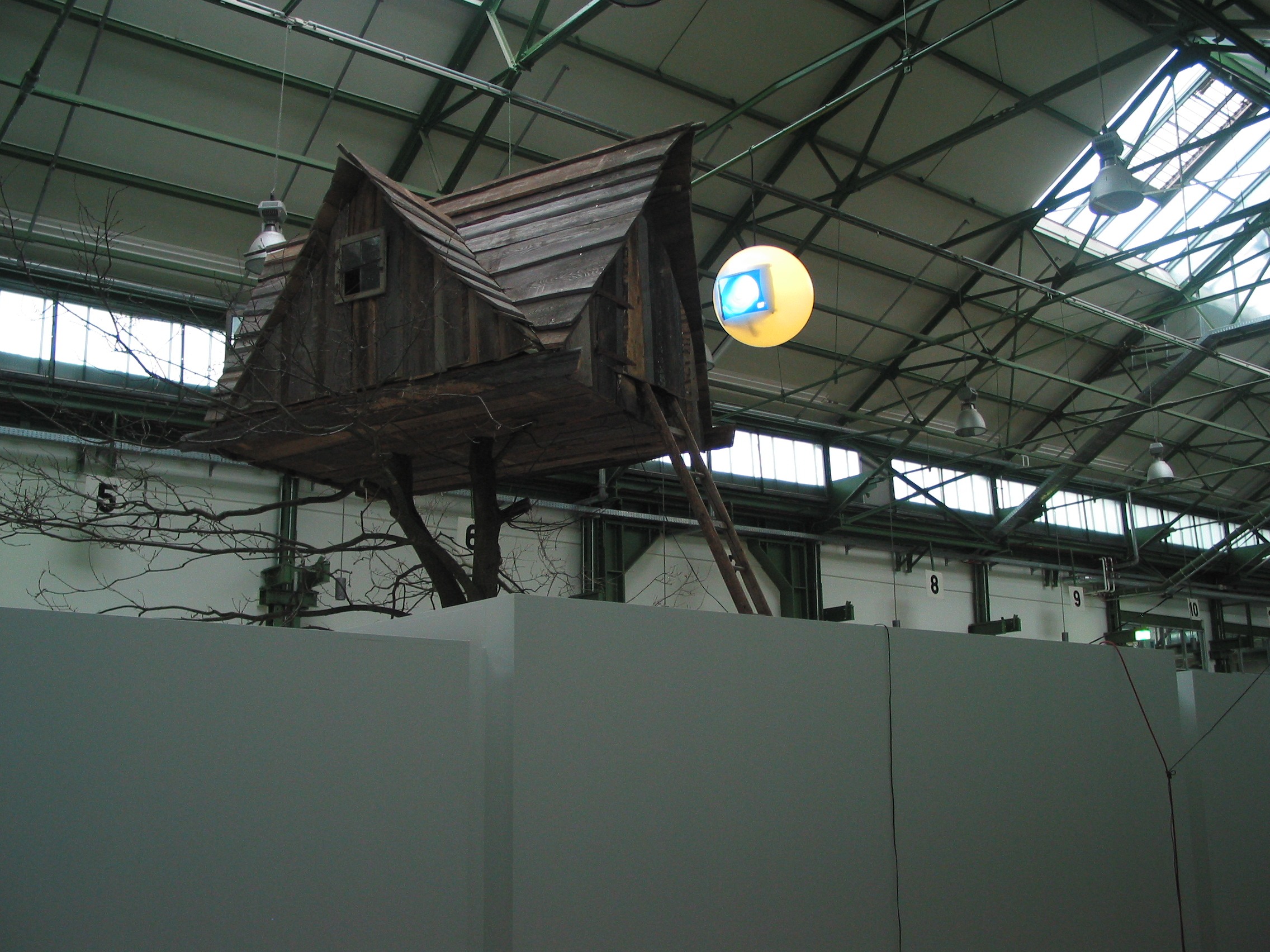 Websitehttp://www.psyk.name/dormart/ausstellung.htmlDatum 2006Ort Depot DortmundMaterial White Cube, Wood, Trunk, Moon-TVAbmessung Installation 4 m x 4 m x 7 m