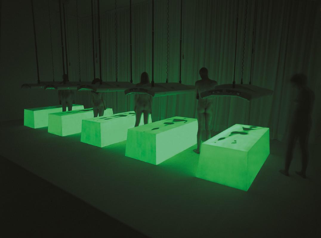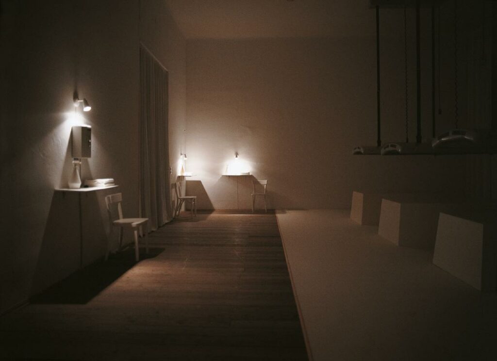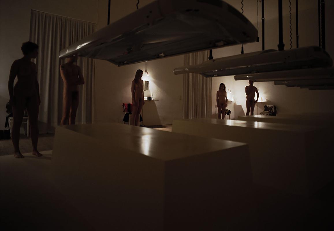 Datum 2000Ort Vienna, AustriaMaterial wood, carpet, chairs, shelfs, tanning beds and equipmentAbmessung Installation 10 m x 7 m x 5 m