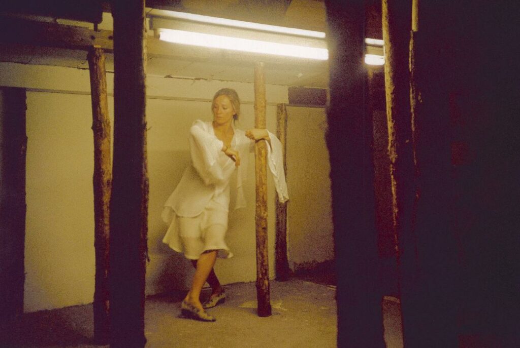 Datum 2001Ort gallery art A.T.O.M, ViennaSetting The ceiling of the gallery space lowered about 1 Meter and supported by trunks.